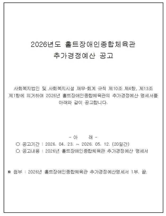 2026 홀트장애인종합체육관 추가경정예산공고